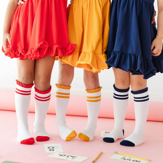 Bright Navy Striped Lace Top Knee High Socks
