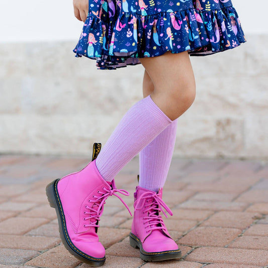 Lilac Striped Scalloped Knee High Socks