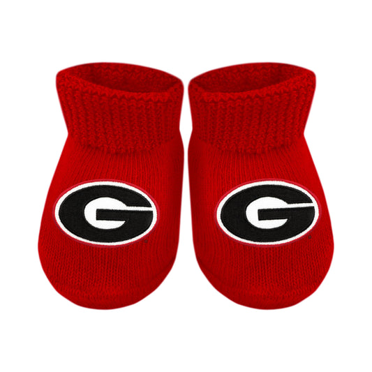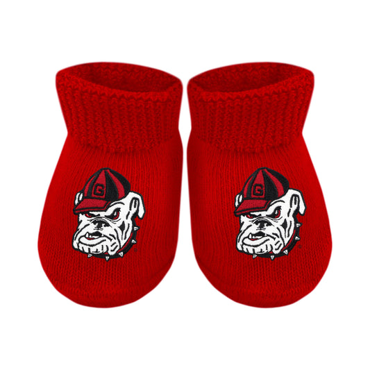 Georgia Bulldogs Newborn Bootie Sock: Black- Bulldog Head