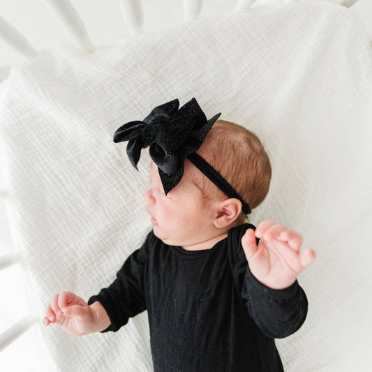 Baby Bling Bows - VELVET FAB® SKINNY: black glitter