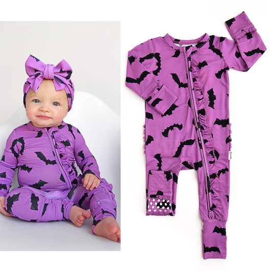 Purple Bats Ruffle Zip