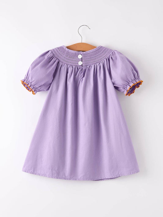 Purple Halloween Smock Embroidery Baby Girl Dress