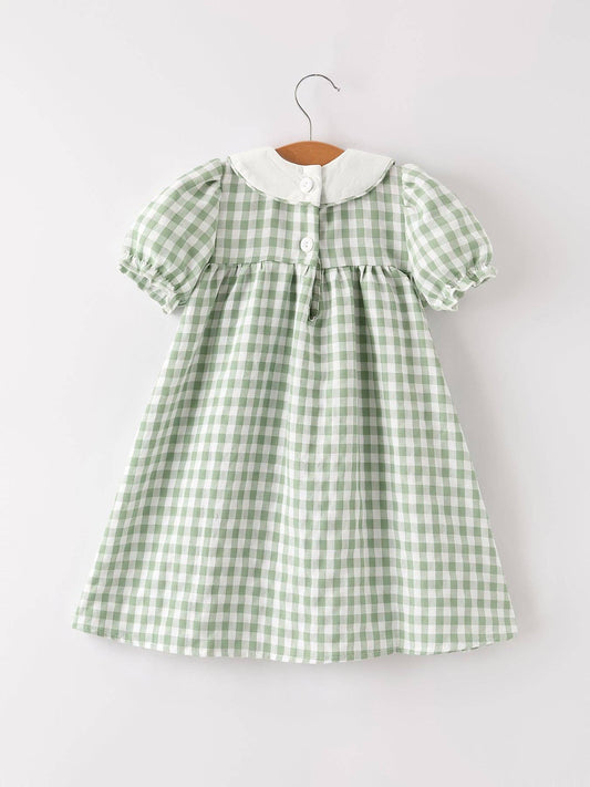Pumpkin Applique Plaid Green Girls Dress