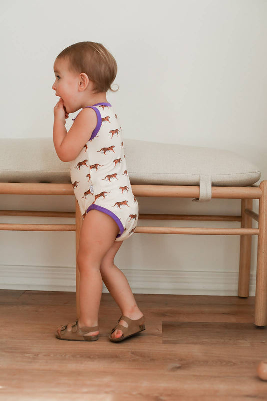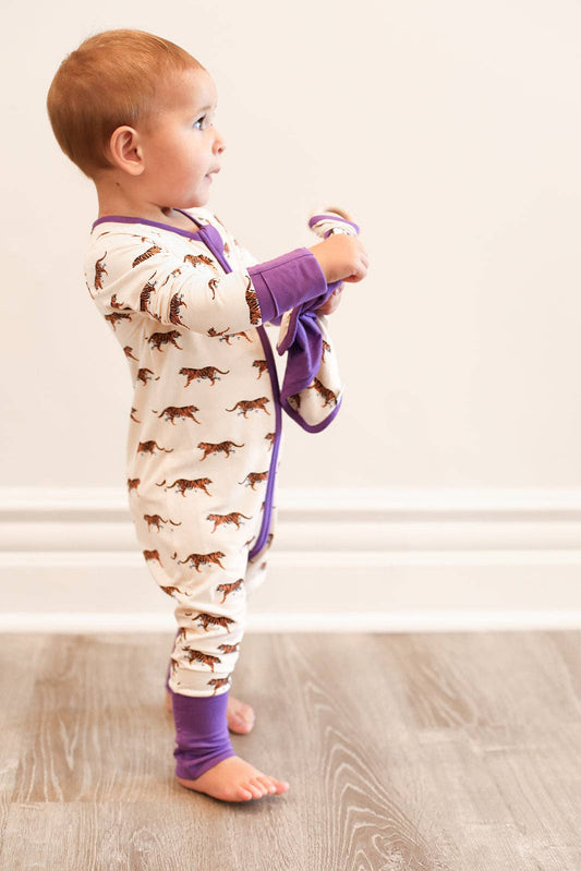 Purple Tiger Bamboo Henley Onesie with Snaps