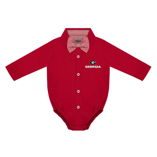 Georgia Bulldogs Infant Button-Up Bodysuit with Bowtie