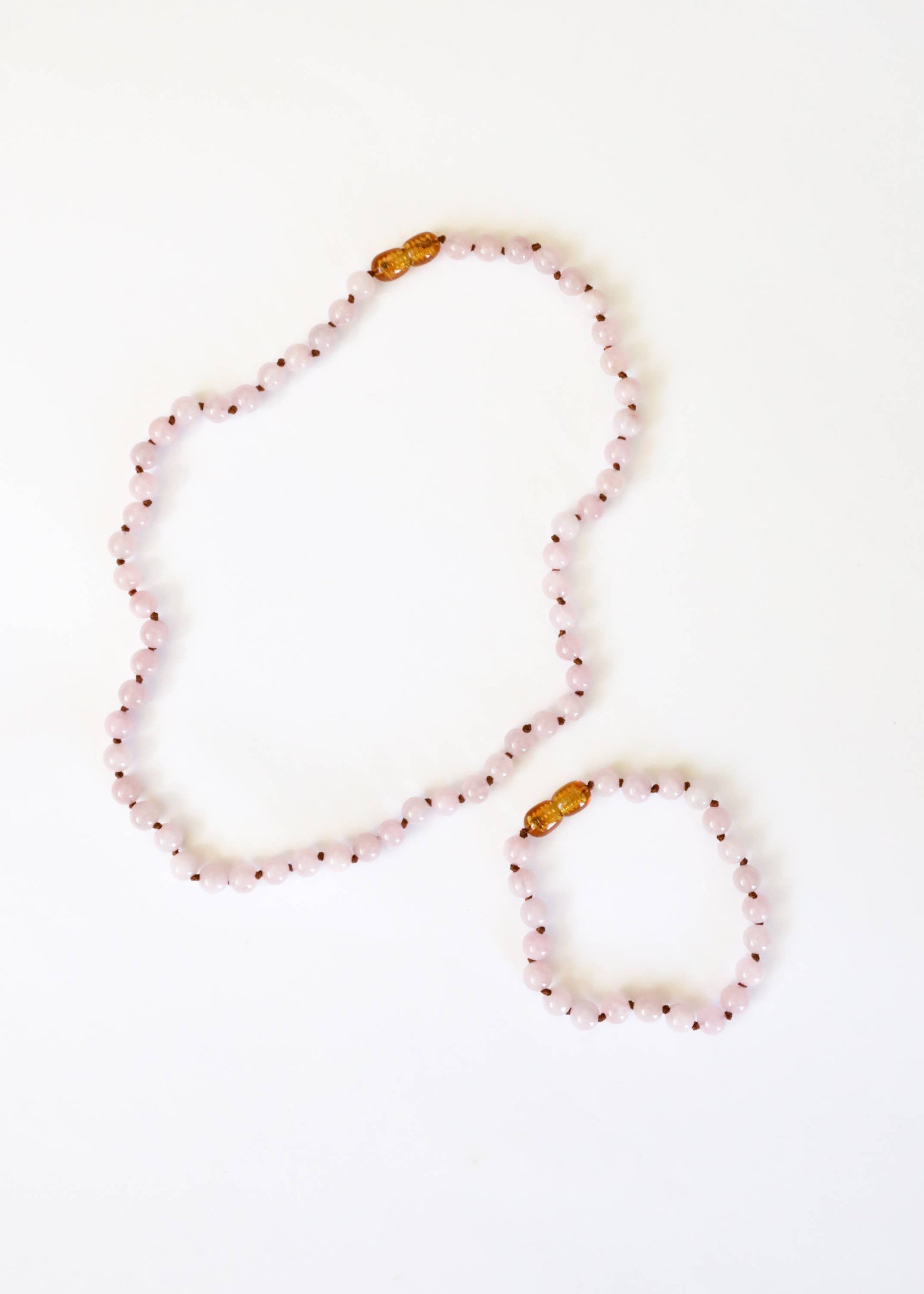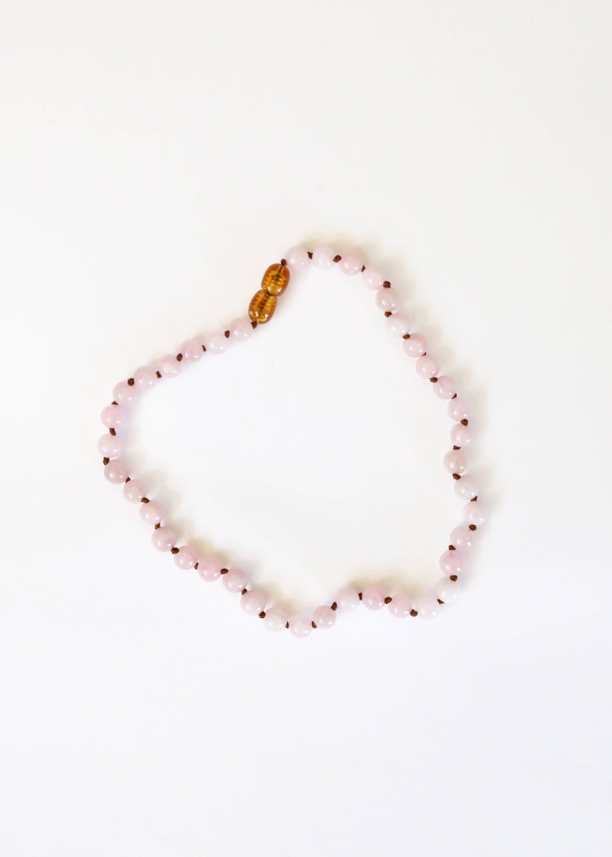 Pure Gemstone + Pink Rose Quartz Beaded Necklace :13"