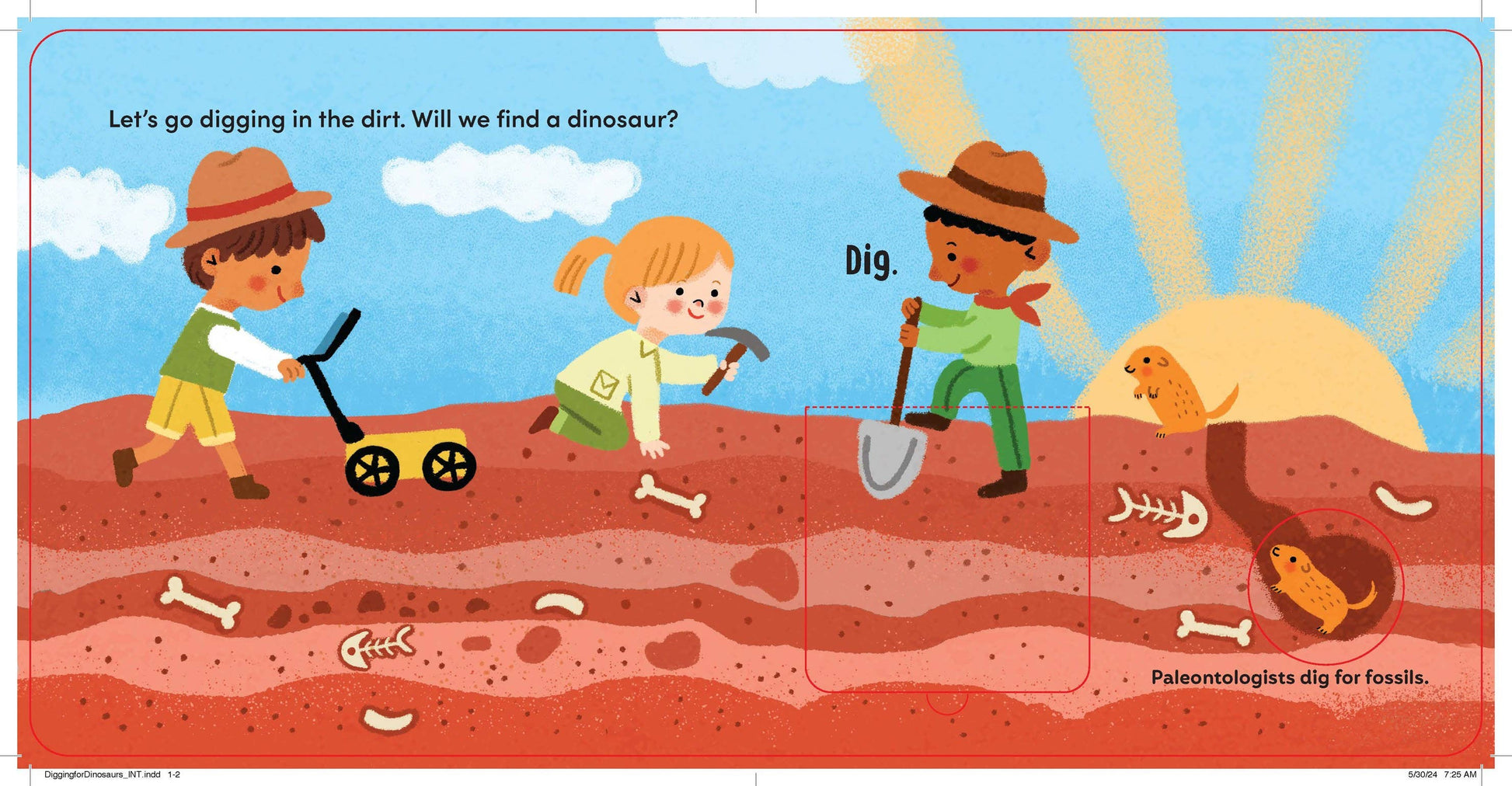 In this uniquely interactive board book series, toddlers will go "digging" for dinosaurs by lifting flaps, discovering many interesting objects hidden in the earth along the way. A delightful introduction to paleontology, young children will enjoy this treasure-hunt approach to storytelling, and their excitement will grow as they get closer to finding the greatest treasure of all: a dinosaur!